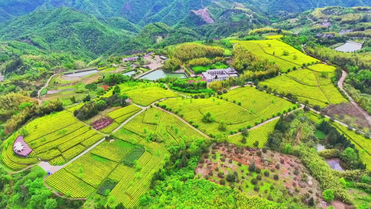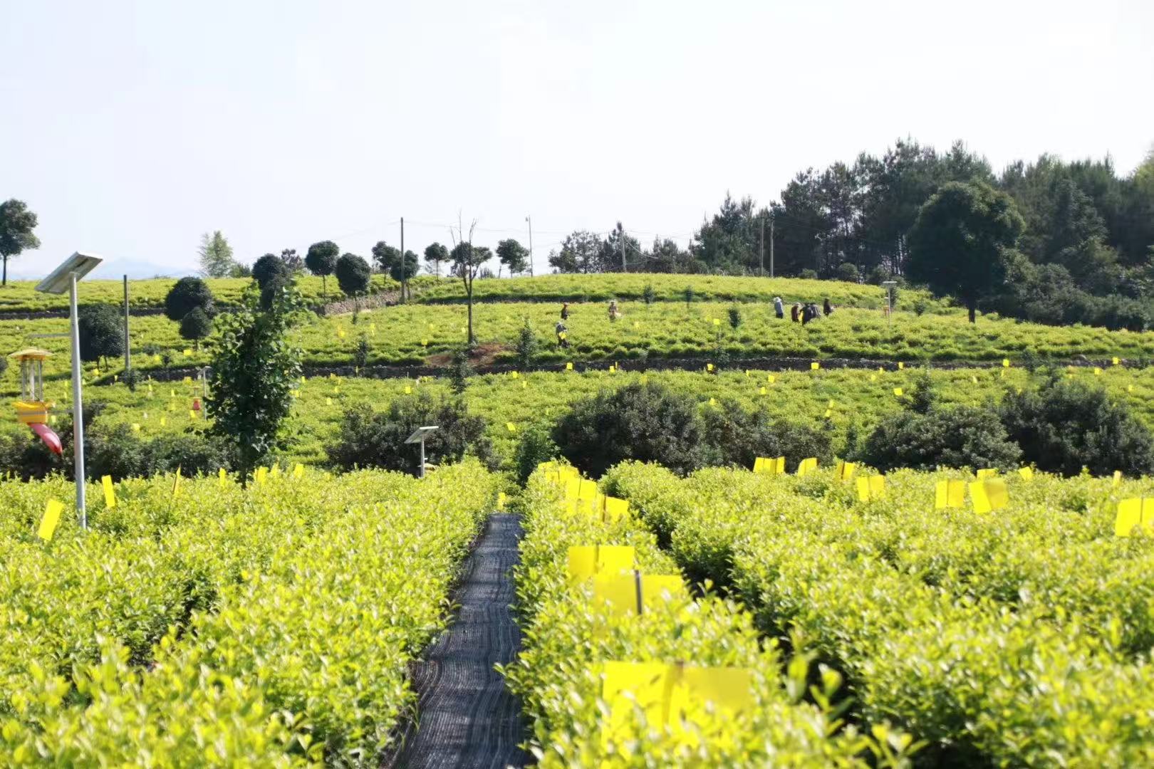 The scenery of the tea mountain in the early morning is very spectacular and charming